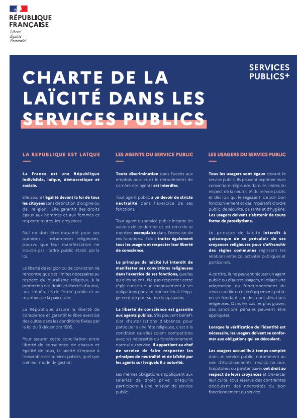 Vous trouverez-ici la charte de la laïcité dans les services publics :